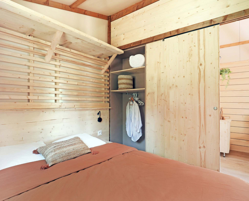 Hébergement haut de gamme avec grande terrasse, ils s’intègrent parfaitement dans le paysage avec leur ambiance bois. Ils sont situés à 300 m du coeur du camping, à côté des chalets cabanes dans un endroit calme et offrent une vue imprenable sur les gorges.